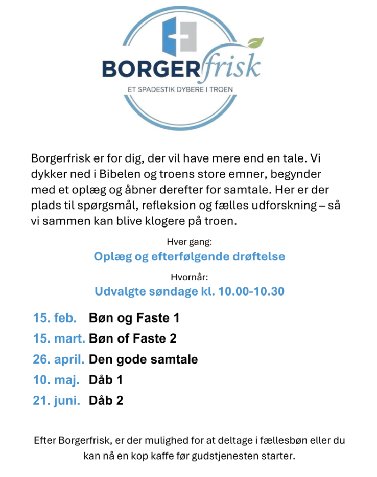 ⛪ Borgerkirken er en fri kirke på folkekirkens grund – et sted, hvor både børn, unge og voksne finder sig til rette, får lyst til at komme igen og måske endda tage en ven med næste gang.